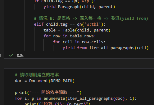 - Python實戰教學: yield 與 yield from 解析,遞迴遍歷docx所有Paragraph(包含儲存格_Cell 中的Paragraph) ; from docx.document import Document as DocxDocument #類別,非function ; from docx.table import _Cell, Table #儲存格/表格 類別
