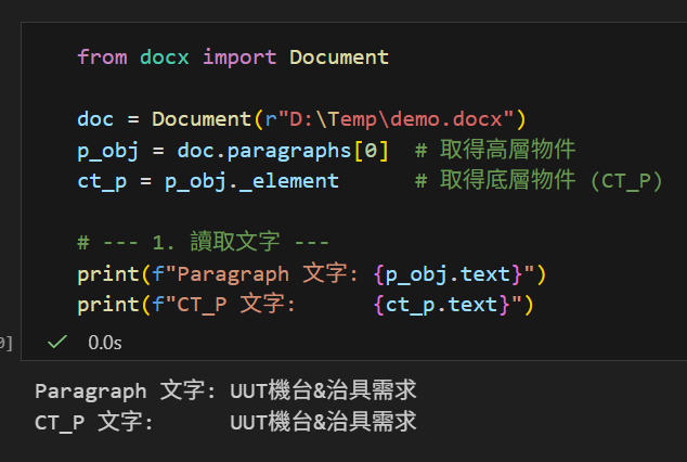 p_obj = doc.paragraphs[0]  # 取得高層物件