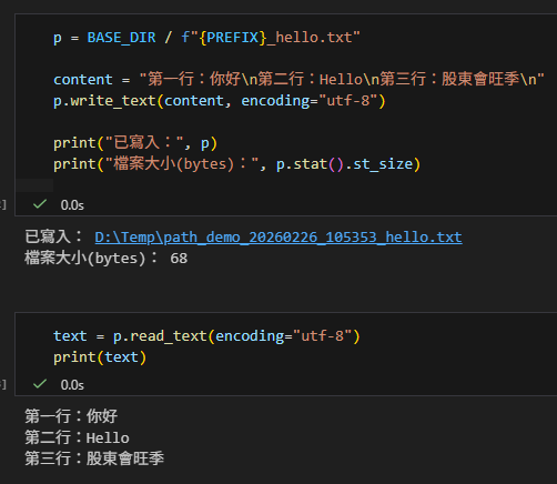 2) 最常用:read_text() / write_text()(整檔文字讀寫)